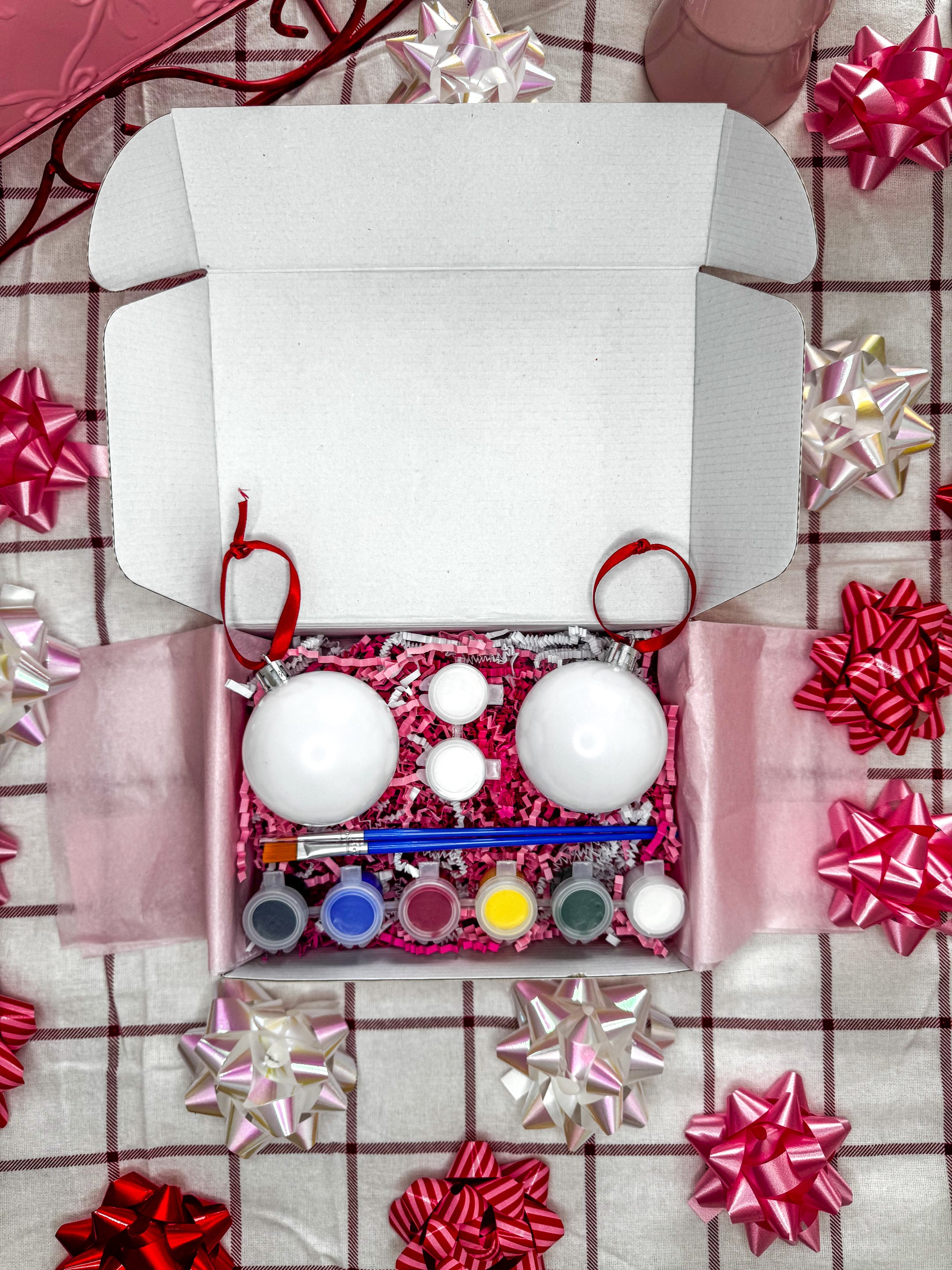 Chaque kit te permet de décorer deux ornements, de mélanger tes propres couleurs et d’obtenir un résultat unique qui fera briller ton arbre de Noël.